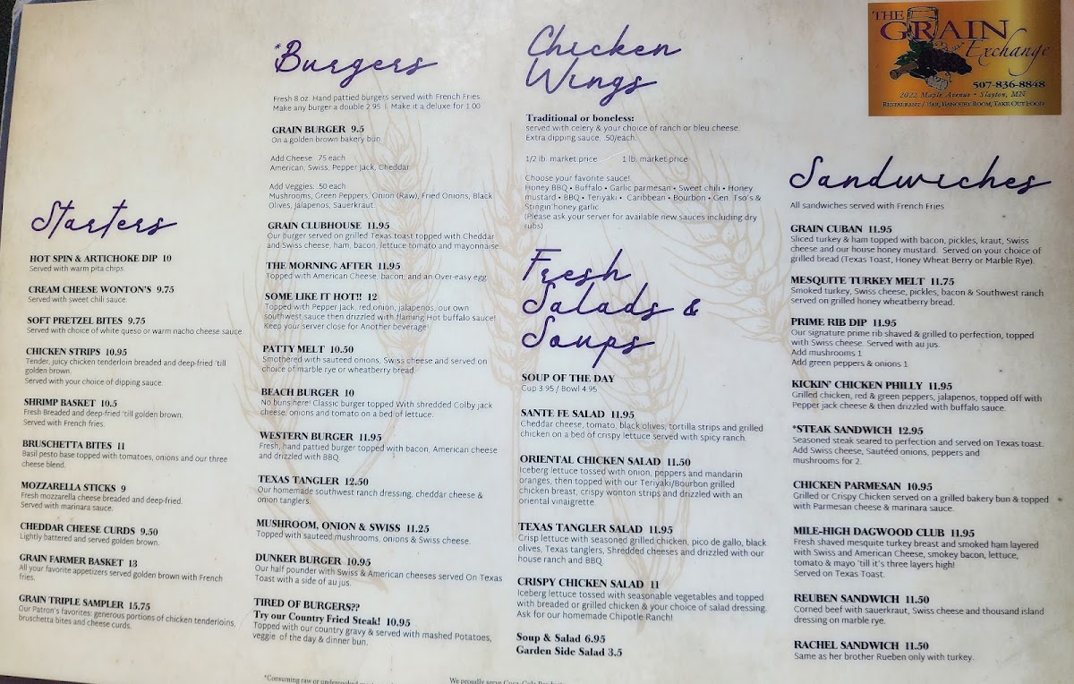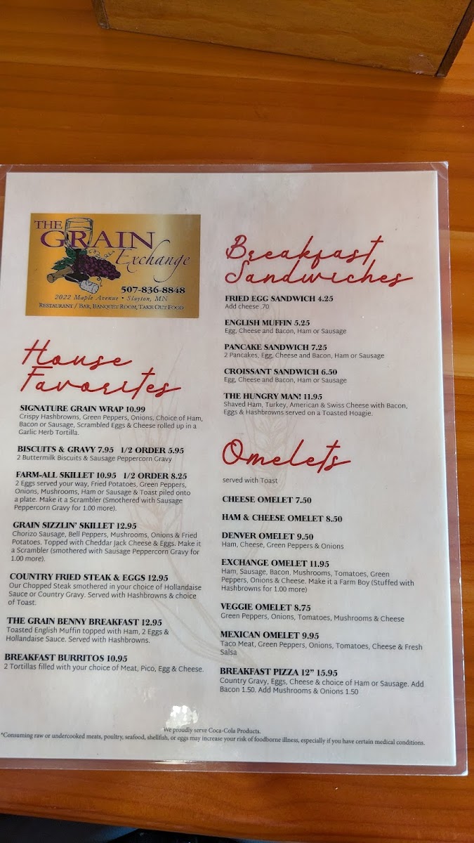 Welcome to Grain Exchange, a delightful bar & grill nestled in the heart of Slayton, Minnesota. Located at 2022 Maple Ave, this establishment has become a hidden gem for locals and visitors alike, offering a menu that is both enticing and fulfilling.